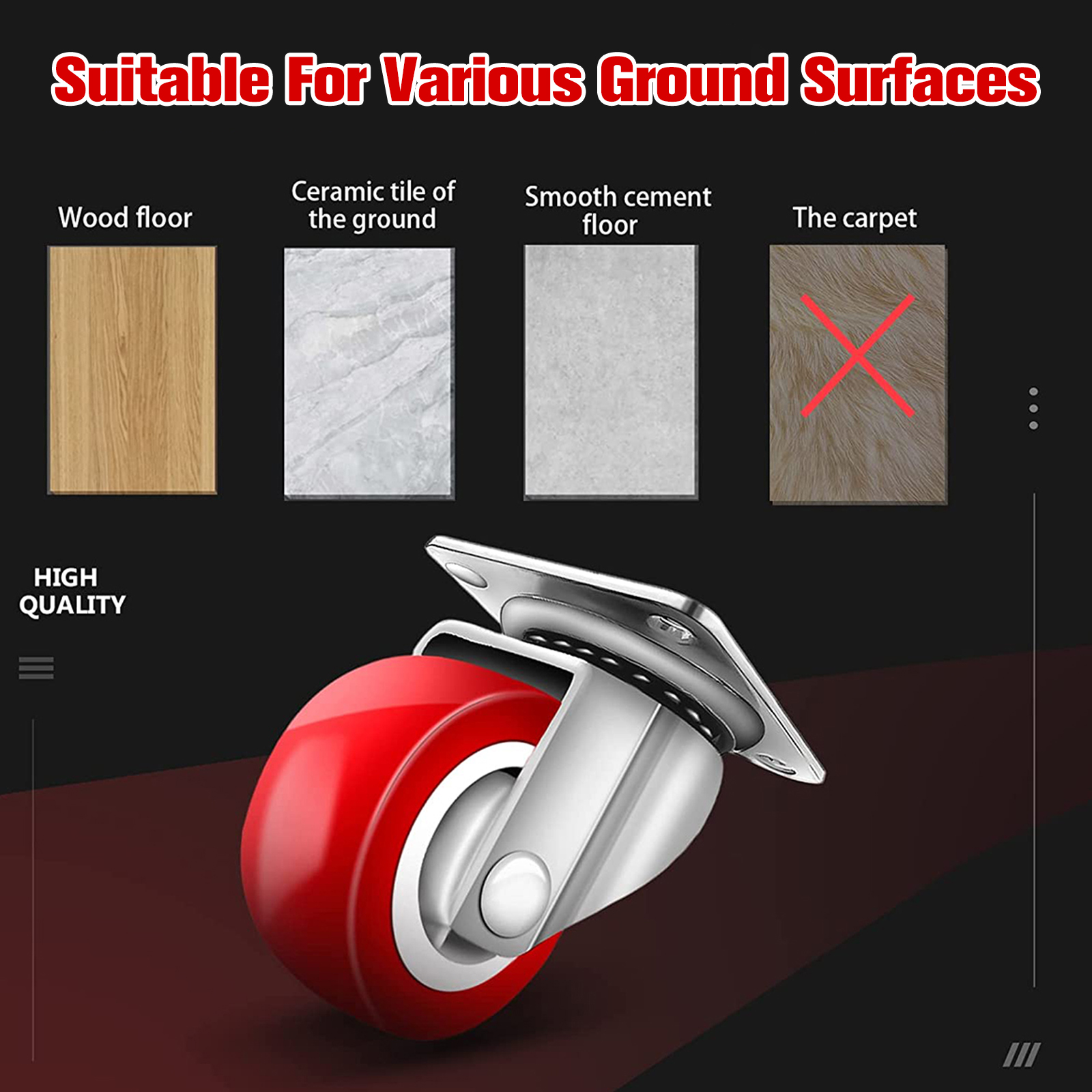 [360° Rotation Wheels] The furniture mover with 4 wheels which are 360° rotatable. The rotating furniture movers match the furniture and equipment feet perfectly for a secure hold. The swivel requires a little force and has on affect to its functionality.