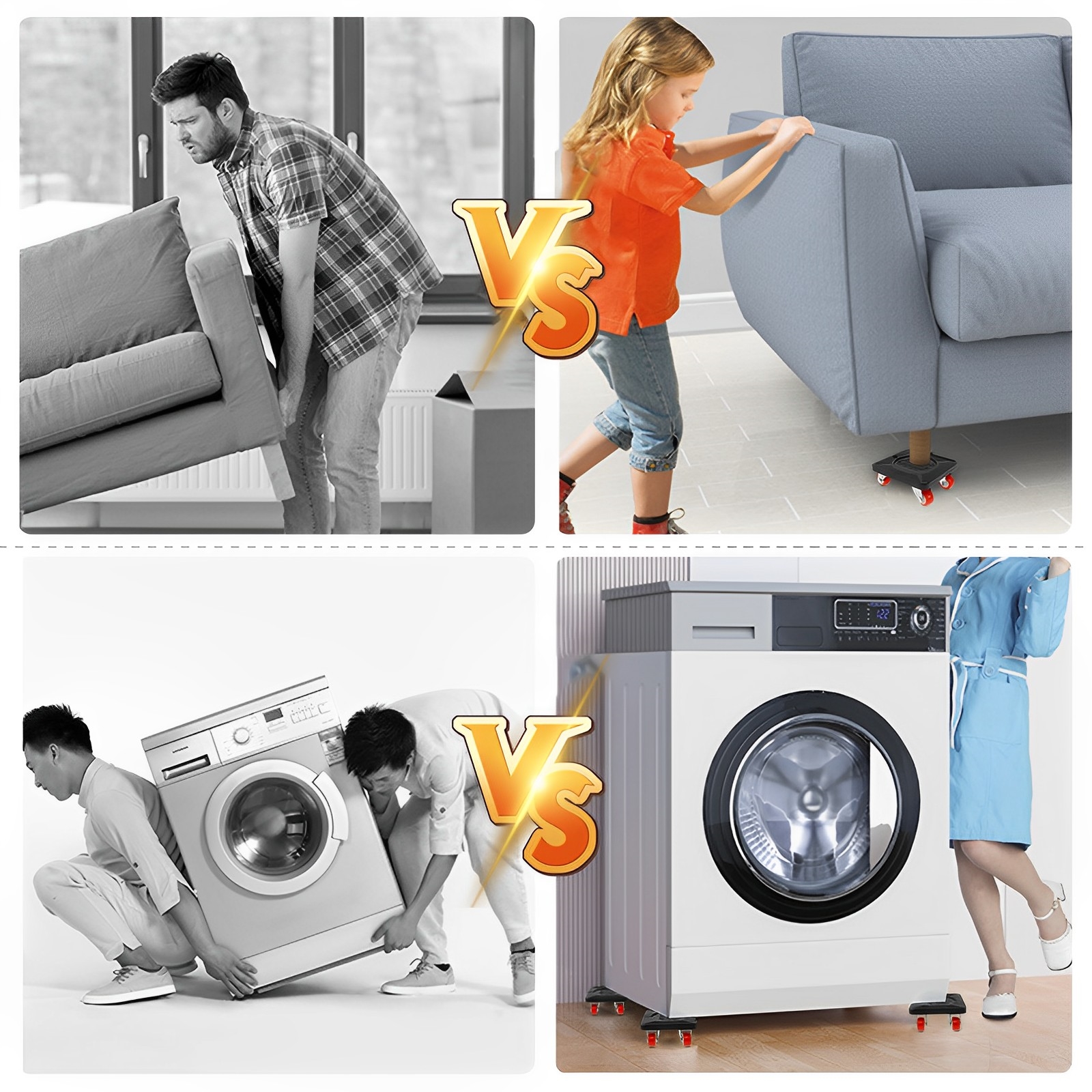 [Wide Application] This furniture lifter mover tool set is convenient and practical. Perfect for moving various objects with ease and it is a good helper for cleaning tasks. Perfect for moving beds, sofas, refrigerators, dining tables, vases, desks, pianos, washer, dryer, household or office items, and even more furniture and other heavy objects.
