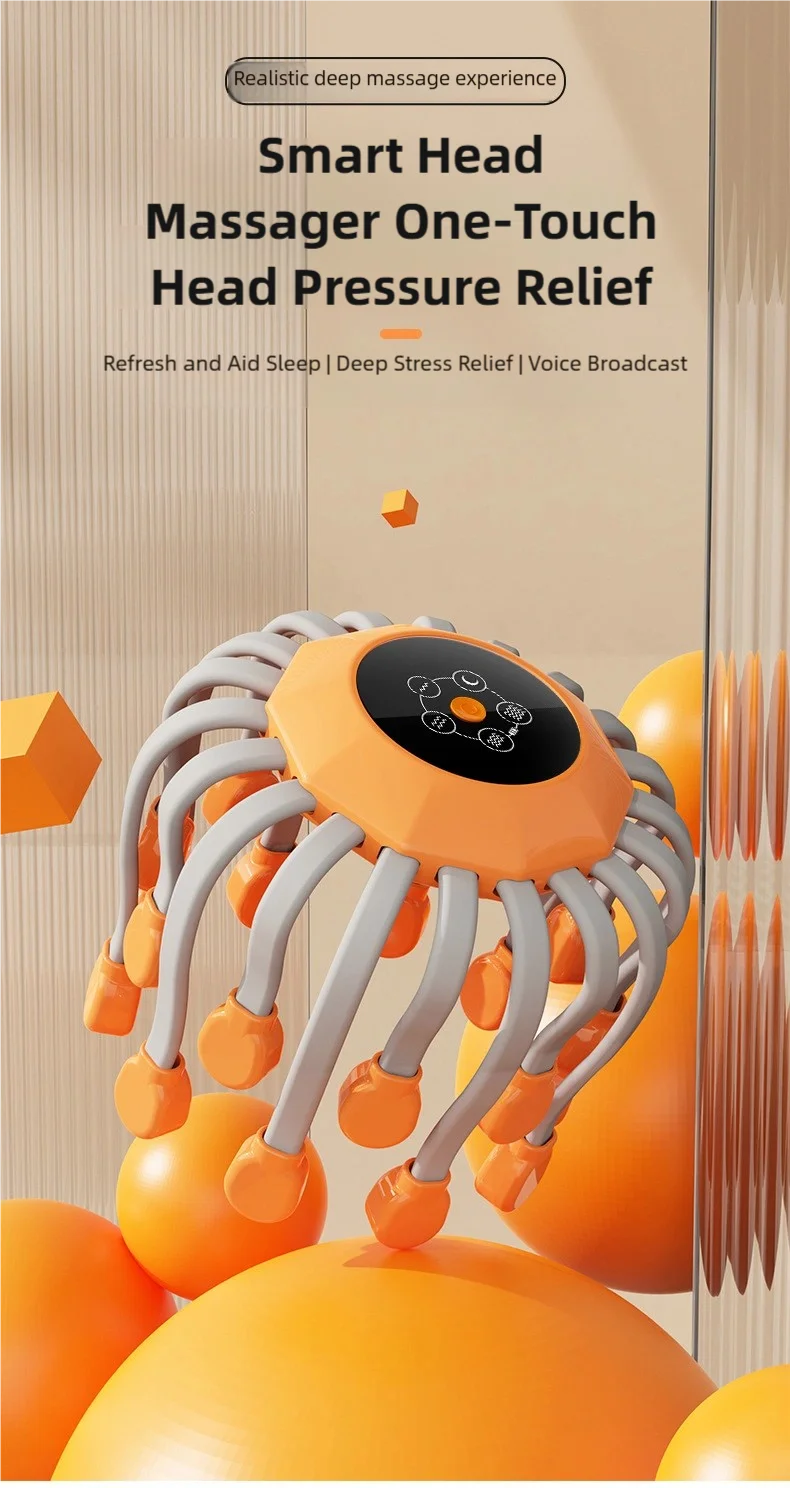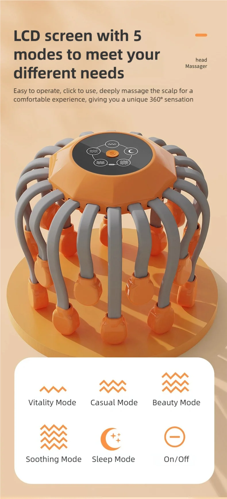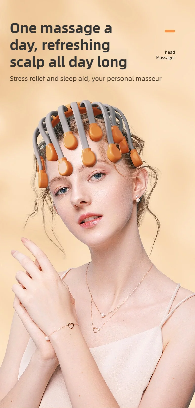 Stress Relief Octopus Head Massager – 20 Nodes for Deep Relaxation & Migraine Relief